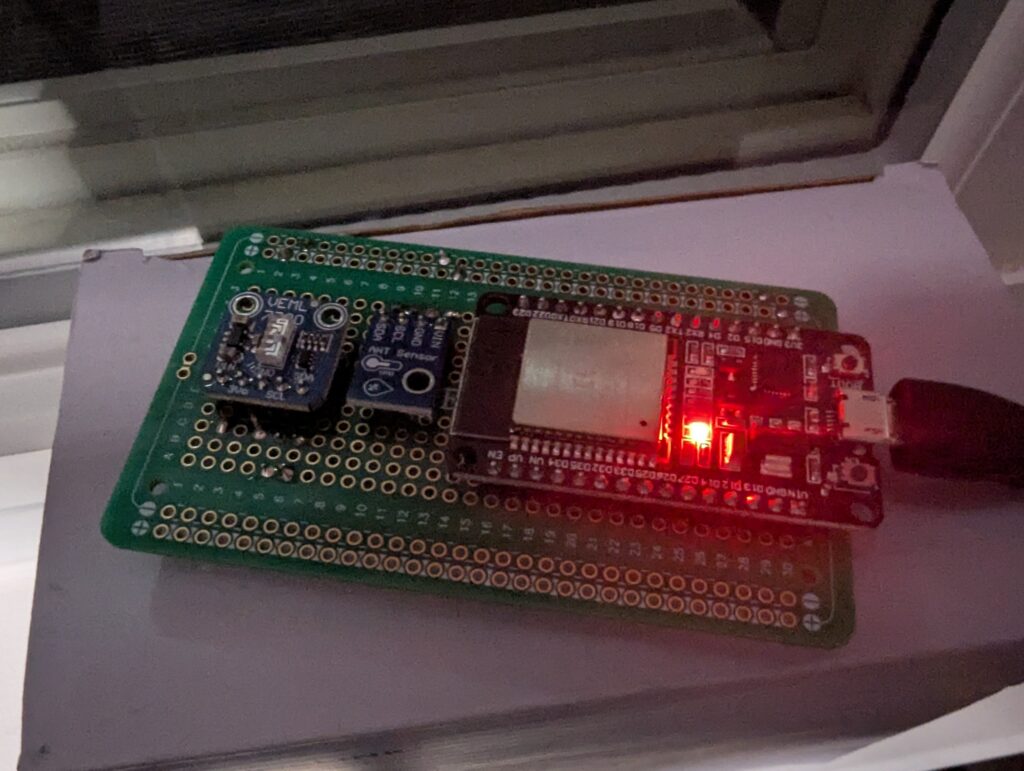 I chose to start by building the solar sensor. I laid out all the parts on a solderless breadboard and connected everything up using jumpers. Interfacing the ESP32 to the VEML7700 solar sensor was easy enough using I2C. I didn’t really need to, but I daisy chained in a temperature/humidity sensor for good measure. I had planned to use the Arduino IDE or the Espressif-IDF add-in for Visual Studio Code to program the ESP32. But then I learned about ESPHome, which already provided everything I wanted to do with the solar sensor. All I needed to do was create a simple YAML file containing some specifics about the ESP32 and the sensors attached to it. I decided to try it out. I knew I could always go back and write the code myself if ESPHome didn’t work out for me.